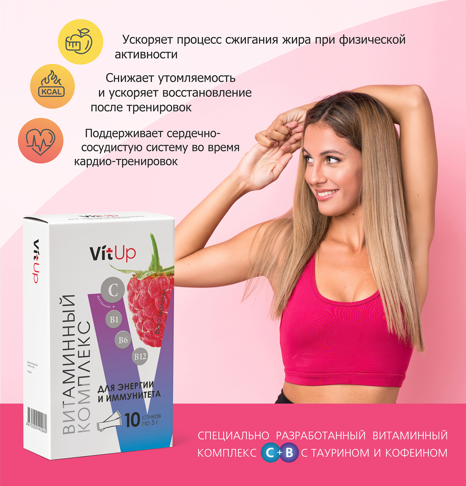 Витаминный комплекс для энергии и иммунитета VitUp со вкусом малины